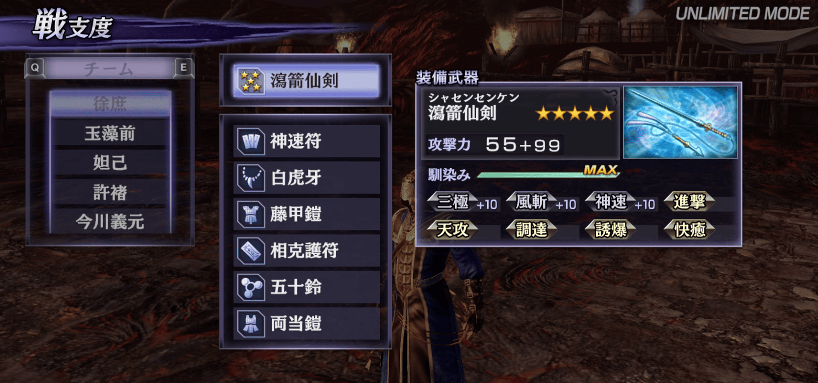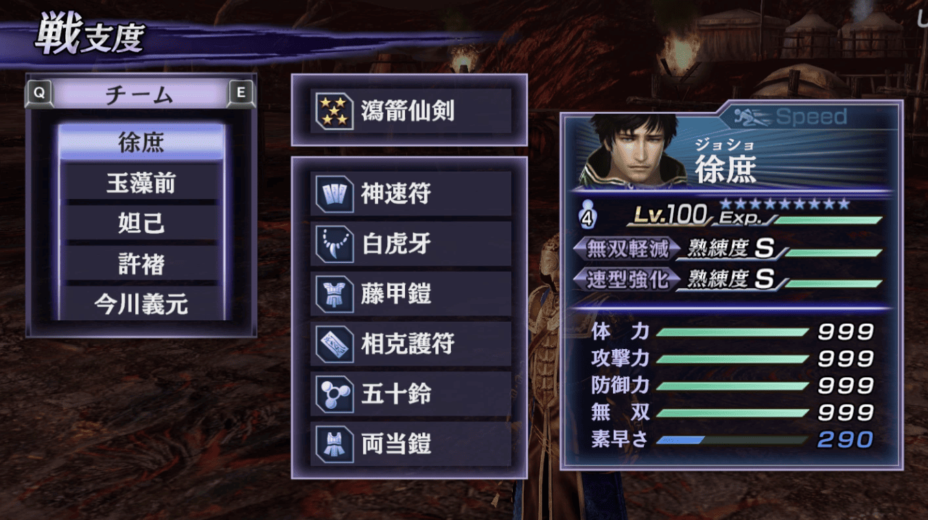 DLCの姉川で徐庶を9回転生させ、その他経験値増持ちの今川義元・妲己・許褚も6回ぐらい転生させています。